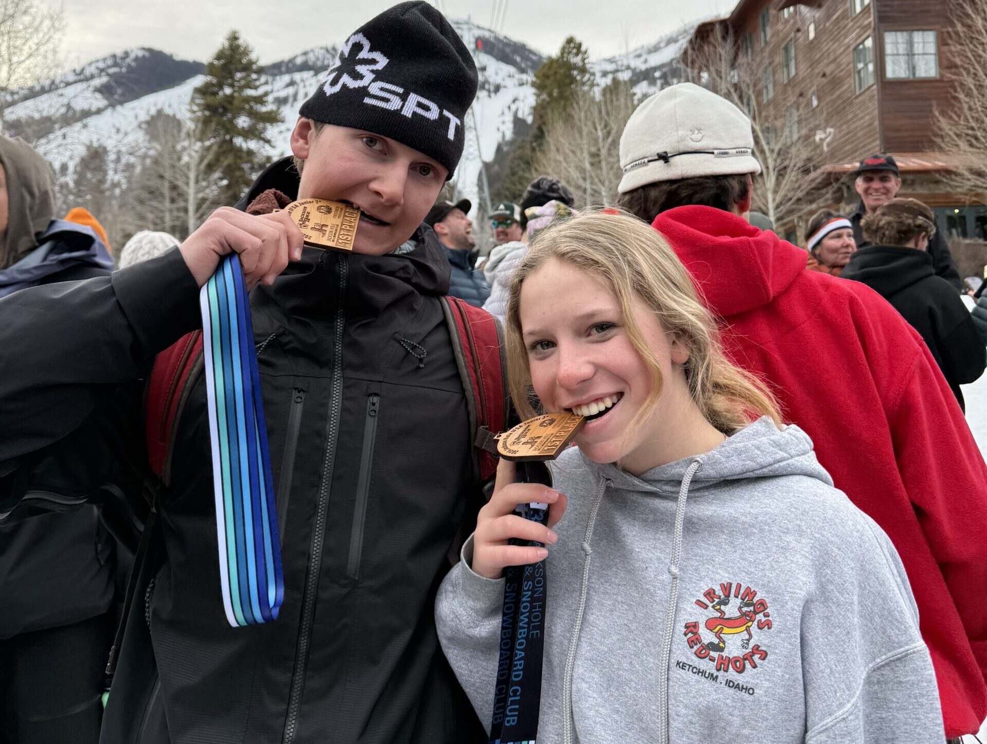 Photo: SVSEF Big Mountain Team athletes Scout Bilbro (R) and Zack Torres (L) enjoying their 1st place medals in Jackson.