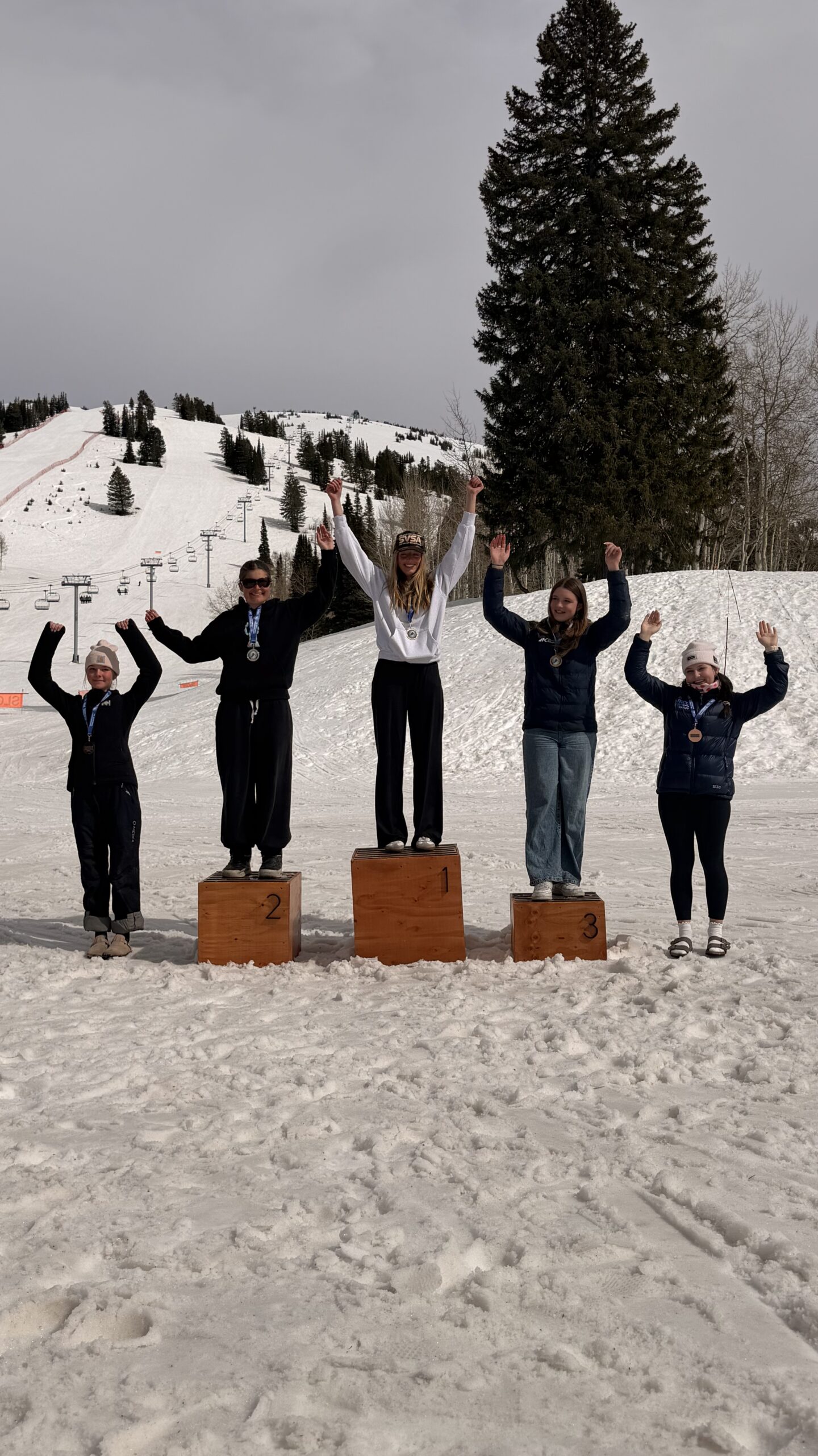 Across four days of racing, athletes competed in Super-G (SG), Giant Slalom (GS), and Slalom (SL) events. Firm morning surfaces followed by spring-like afternoon conditions provided a dynamic racing environment, challenging athletes to adapt and perform across varying terrain and snow conditions. SVSEF was represented by 20 athletes, many of whom delivered standout results against deep regional competition.
